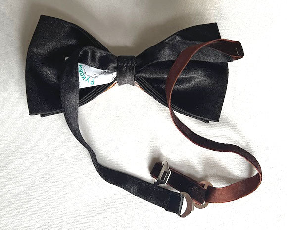Champagne tones: buff pink, silver, white,embroidered Bow Tie on black silky fabric. Cross stitch pattern. Hook attachment on collar strap. Made in Ukraine.
