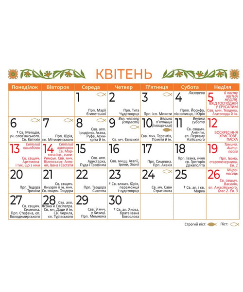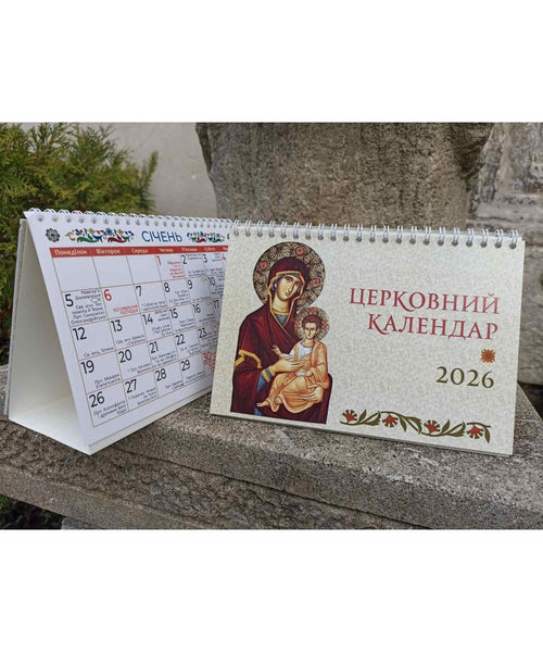 Colorful and practical tabletop church calendar illustrated with lovely icons. in Ukr.