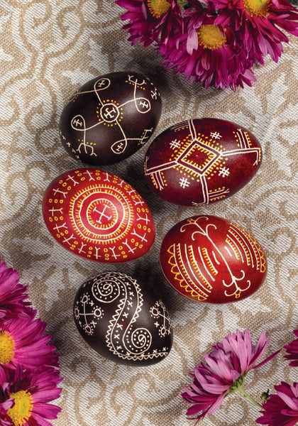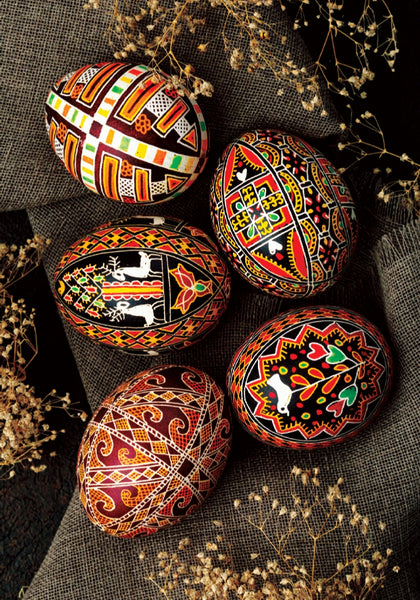 This is a collection of color pysanky images from different regions of Ukraine in the form of a book-shaped folder of image cards. Each card has a set of unique pysanky. Softcover booklet/folder of 50 plates, 8"x5.5"x0.75". text in Ukr. Very nice collection! Part of a series of 4. Printed in Ukraine.
