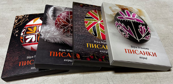 This is a collection of color pysanky images from different regions of Ukraine in the form of a book-shaped folder of image cards. Each card has a set of unique pysanky. Softcover booklet/folder of 50 plates, 8"x5.5"x0.75". text in Ukr. Very nice collection! Part of a series of 4.  Printed in Ukraine.