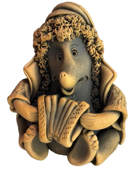 Ceramic figurine in folk style depicts a hedgehog playing an accordion. The piece is crafted with great attention to detail, featuring textured spines, a gentle facial expression, and a carefully sculpted accordion. The harmonious beige and brown color palette creates a cozy, friendly feel. Ideal as an interior decorative accent, a collectible item, or a charming Ukrainian souvenir. You can just imagine him playing a kolomyjka!