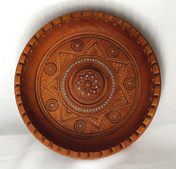 Intricately designed, carved hardwood bowl made in the Kosiv - Yavoriv region has bead detail.