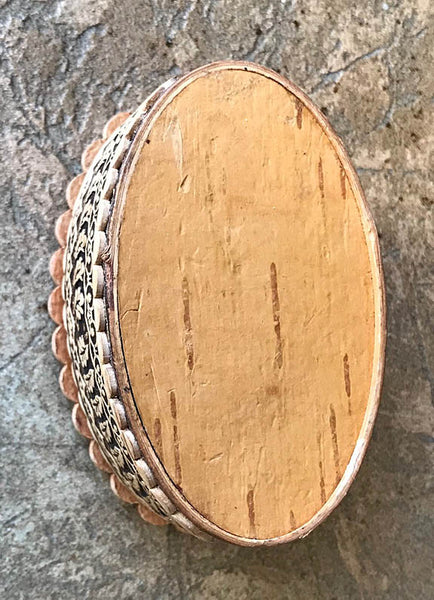 3"long x 1.25"h. Oval birchbark mini-box has intricate design of a church. Note the unique design inside the box! Made in Ukraine.